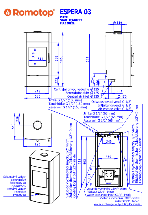 Romotop ESPERA jsou krbová kamna s teplovodním výměníkem a dvojitým prosklením dvířek. Kombinují vysokou účinnost, stabilní výkon do otopné soustavy a čistý pohled na oheň. Vhodná pro moderní interiéry a nízkoenergetické domy.